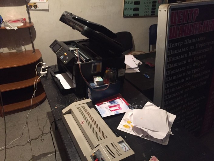 В ходе обыска типографии обнаружены и изъяты фальшивые купюры с различными номерами на сумму 25 тысяч тенге, 28 листов формата А4, на которых были нанесены цветным принтером формы купюр номиналами 1000, 2000, 10 000 тенге, специальные бумаги, а также цветные принтеры и компьютеры.