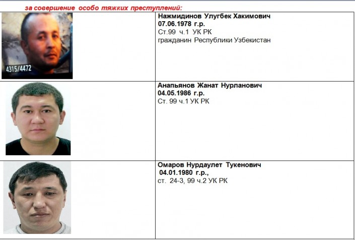 "Управлением криминальной полиции Нур-Султана разыскиваются уголовные преступники. Если вы располагаете информацией по разыскиваемым лицам, просим сообщить по телефонам: 8 (7172) 71-60-10, отдел криминального розыска: 71-60-22, 8-778-638-88-70, 8-701-716-41-20 или 102. Анонимность гарантируется!" - говорится в сообщении.