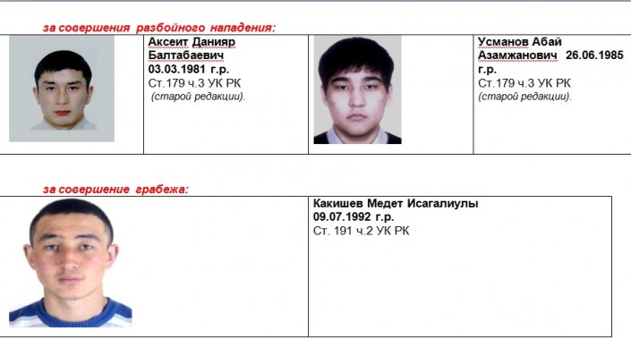 Фото преступников опубликовала полиция Нур-Султана