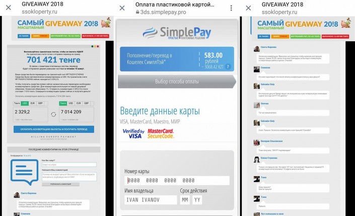 "Просят переводить деньги, но ничего не платят. Просьба правоохранительным органам проверить данные аккаунты и счета для переводов", - подписал скрины из соцсети пользователь Facebook.
