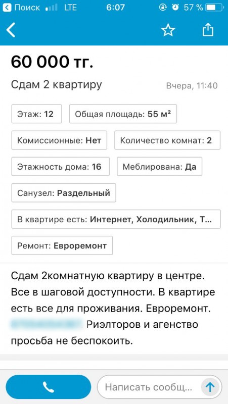 "Женщина, которая сдавала квартиру, представилась Айнурой, сотрудницей полиции, и была в форме. При встрече она сказала, что ей надо ехать на службу, поэтому 60 тысяч тенге за съем квартиры нужно заплатить в течение получаса. В назначенное время мы привезли деньги и составили договор аренды. Нас насторожило, что в квартире были чьи-то вещи, в том числе и детские, на что "хозяйка" ответила, что это вещи предыдущих жильцов, которые сегодня съедут. Сама женщина была приветлива, вела себя по-хозяйски", - рассказывают пострадавшие.