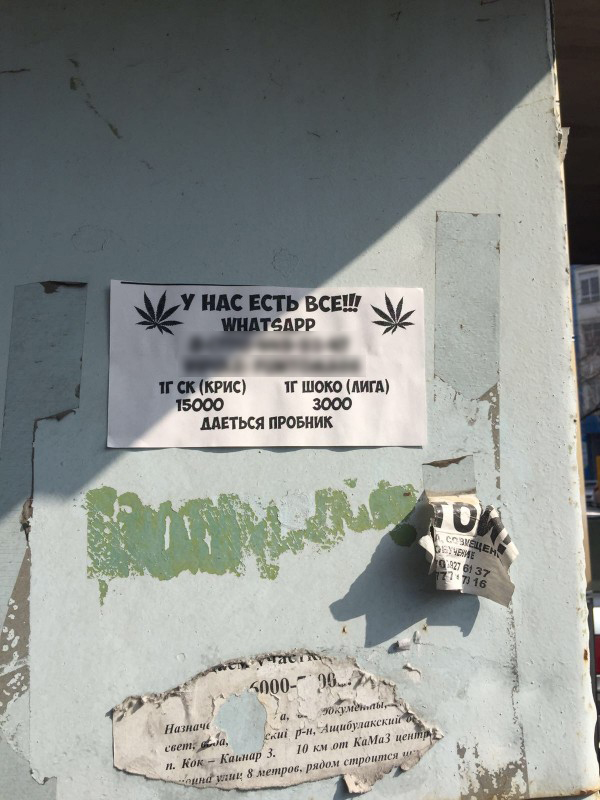 Один из читателей прислал в редакцию фотографию, на которой запечатлел подобное объявление, которое было размещено на двери подъезда во дворе жилого дома. Судя по объявлению, предполагаемые продавцы без всяких опасений написали номер мобильного телефона, по которому можно связаться с ними. Наркотики отпускаются от 3000 тенге за грамм, а цена некоторых доходит до 15 000. Причем желающим даже предлагают так называемый "пробник", чтобы убедиться в качестве товара. Как сообщили в ДВД города, данную информацию изучают в Управлении по борьбе с наркобизнесом.