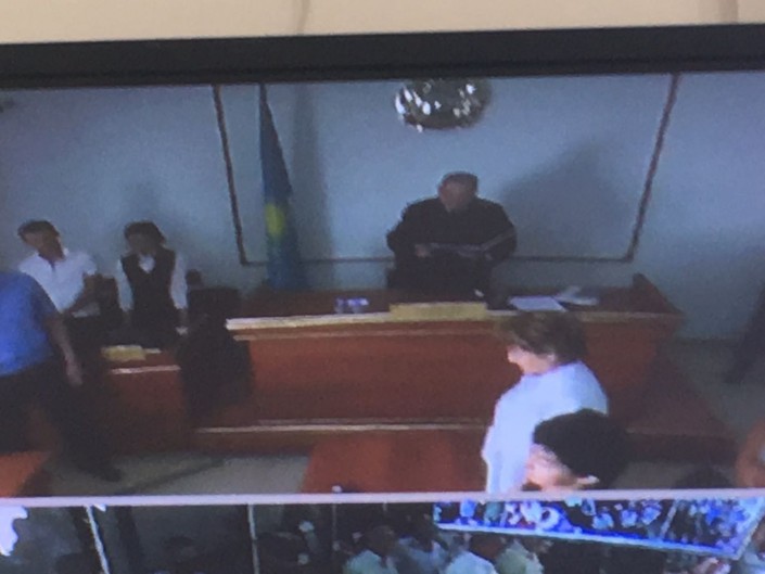 После оглашения приговора судьей Ахметкали Мулдагалиевым Еркин Избасар начал кричать в зале суда, его удалили из-за нарушения порядка.