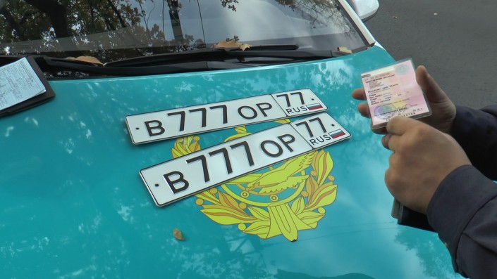 "На данном транспортном средстве в этот момент был установлен госномерной знак ТС с принадлежностью Российской Федерации. При проверке документов водитель предъявил инспекторам технический паспорт на авто, который, равно как и госномер, оказался поддельным. Помимо этого, в багажном отсеке Mercedes были обнаружены еще четыре комплекта ГРНЗ, наручники и бита. А среди личных вещей водителя при досмотре было обнаружено поддельное служебное удостоверение сотрудника ДКНБ. Все вышеуказанные предметы были изъяты следственно-оперативной группой в процессуальном порядке и приобщены к материалам уголовного дела по признакам уголовного правонарушения, предусмотренного статьей 385 "Подделка, изготовление или сбыт поддельных документов, штампов, печатей, бланков, государственных знаков почтовой оплаты, государственных наград" УК РК", - сообщил начальник Управления административной полиции Департамента полиции Алматы полковник полиции Жандос Мураталиев.