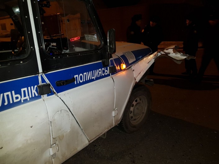 "На пересечении улиц Теплова и Сатпаева автопатруль 631 в составе экипажа полицейских - сержантов Нурбека Ундерме и Руслана Зейноллинова, увидев мчавшуюся разыскиваемую автомашину, принял решение о принудительной остановке транспорта и протаранил данное авто. Только столкнувшись  с полицейской автомашиной, повредив ее, угонщик остановился", - сообщили в пресс-службе полицейского департамента.