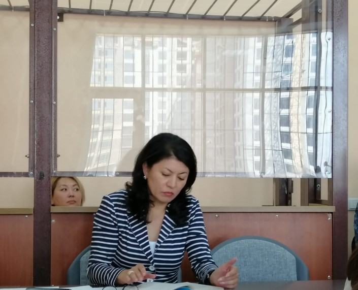 Эльмира Суханбердиева (на заднем плане) и ее адвокат. Фото Tengrinews.kz