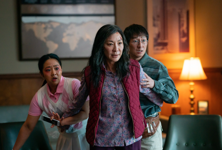 Первая, и наверное, самая заметная отсылка – это фильм "Матрица". Создатели, впрочем, этого и не скрывают. Основным источником для вдохновения был культовый фильм Ланы Вачовски об офисном клерке Нео (Киану Ривз), который становится Избранным. Эвелин также из простой владелицы прачечной и замученной женщины превращается в того героя, кто должен "спасти всю вселенную".