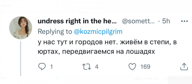 Главным объектом для шуток выступил стереотип о юртах, лошадях и степном образе жизни.