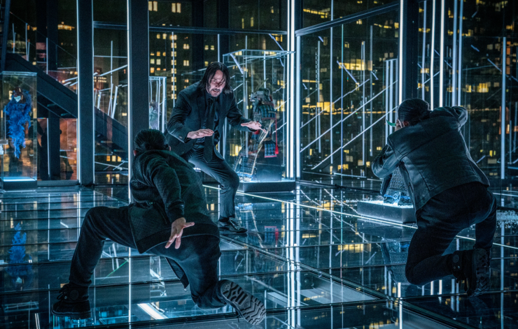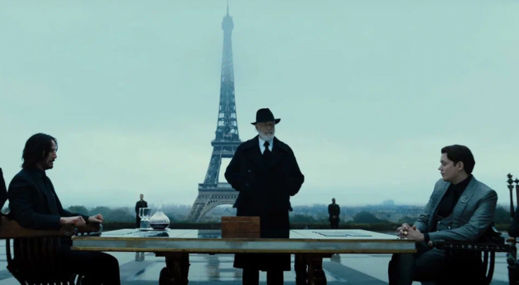 Хмурый Киану также часами наказывает противников, но особое внимание стоит обратить на антагонистов этой части. Они весьма интересны: аристократ Билл Скарсгард, любящий изысканные пирожные, Донни Йен в черных очках и Скотт Эдкинс, каким-то чудом напоминающий злодея из бондианы.