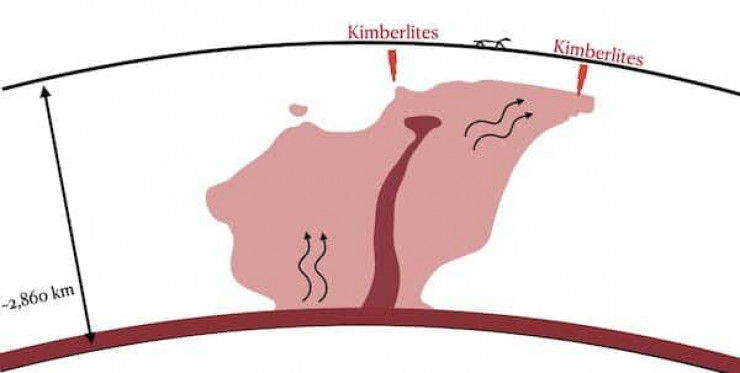 "Тепловые столбы" начинаются на глубине около 2900 километров, то есть сразу над земным ядром. При этом ближе к центру таких столбов мантийные плюмы (горячие потоки в мантии, движущиеся независимо от ее течения) поднимаются гораздо быстрее и переносят более плотный материал, что может объяснить химические различия между кимберлитами на разных континентах.