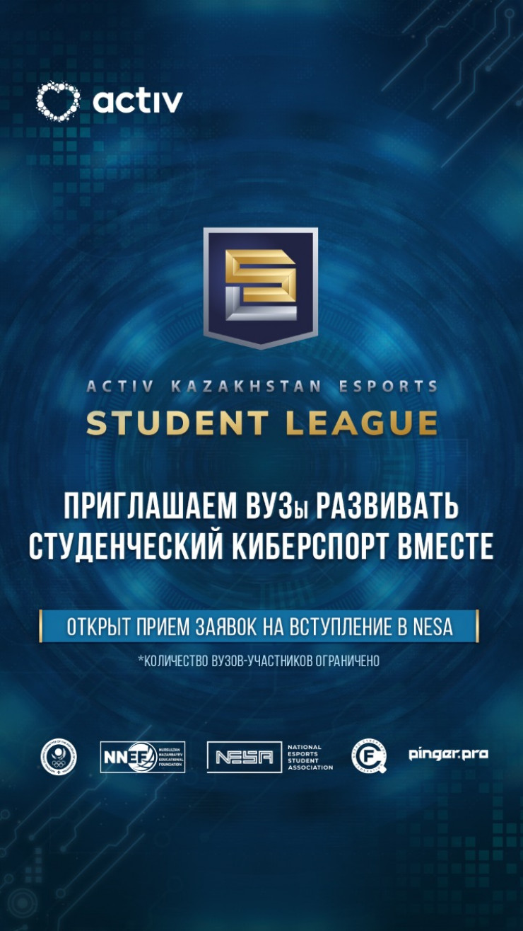 Для участия в третьем сезоне Kazakhstan Esports Student League руководство высшего учебного заведения должно вступить в NATIONAL ESPORTS STUDENT ASSOCIATION, что откроет его студентам дорогу в студенческую киберлигу с призовым фондом в 1 млн тенге уже нынешней осенью. Отметим, что турнир является регулярным, так что даже если какой-то вуз не успеет со вступлением в этом году, он вполне может стать участником лиги в следующем году.