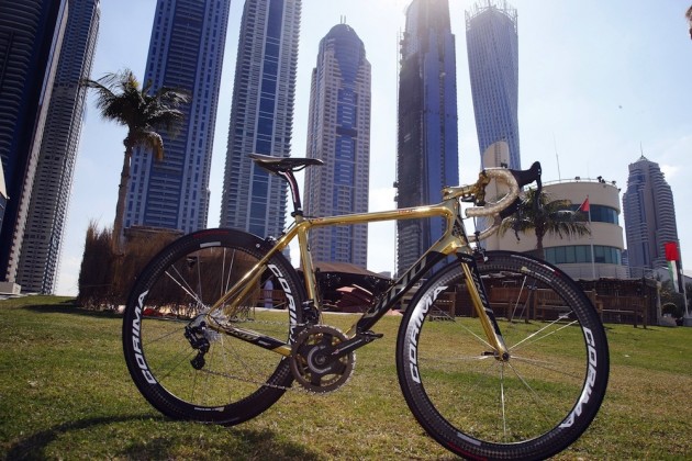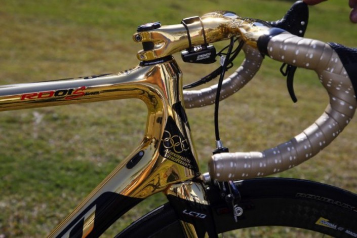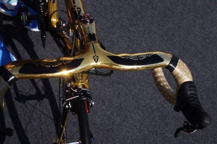 Винокуров показал свой золотой велосипед с казахским орнаментом © cyclingweekly.co.uk