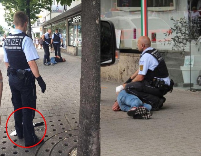 По информации немецких СМИ, нападавшего помог обезвредить неизвестный водитель на BMW. Мужчина наехал на машине на убегавшего беженца, и таким образом помог полицейским его догнать.