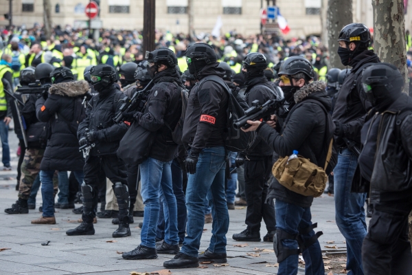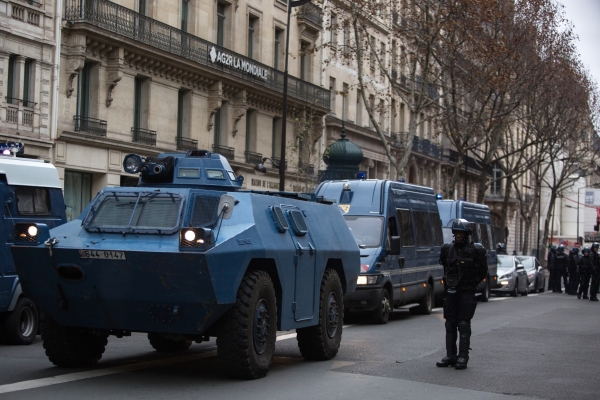 Чтобы сдержать протестующих, были мобилизованы несколько тысяч полицейских и как минимум 12 бронемашин. Бронетехника на улицах Парижа появилась впервые за 13 лет. На Елисейские поля вывели целое подразделение кинологов с овчарками. Для разгона толпы привлекли конных полицейских.