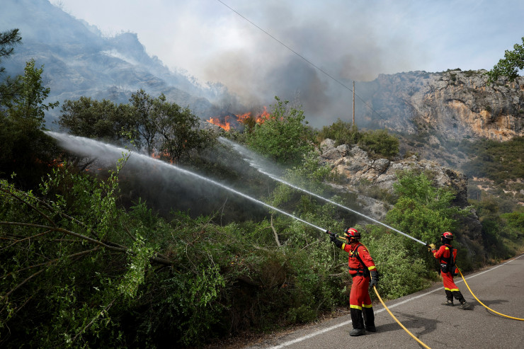 Тем временем пожарные в Испании продолжают бороться с лесным пожаром, который бушует в течение нескольких дней в результате аномальной жары, которая принесла рекордные температуры для июня в стране. Так, во многих городах Испании столбики термометров поднялись выше 40 градусов по Цельсию.