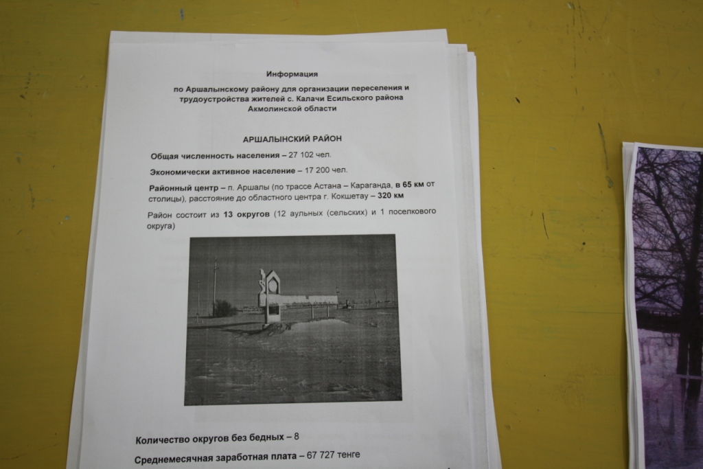 Заместитель акима Есильского района Сауле Агымбаева нам объясняет, что о массовом переселении речь в данный момент не идет. Уезжать по приглашению в другой поселок - дело добровольное.