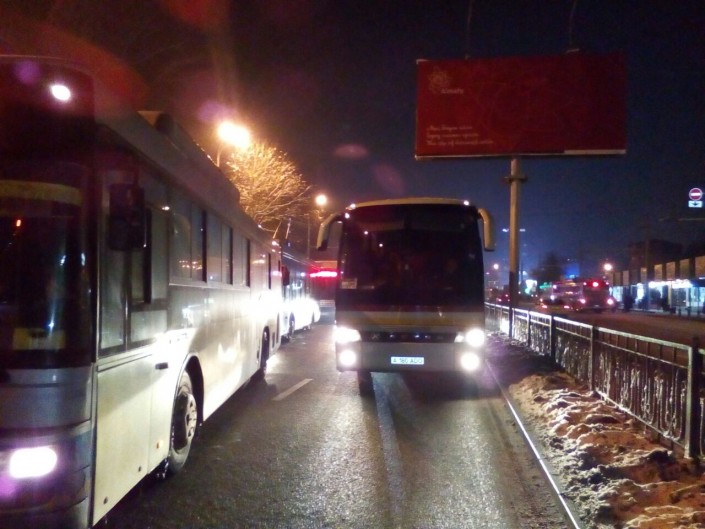В Алматы из-за столкновения троллейбуса и автобуса заблокировался проезд по проспекту Абая фото очевидца