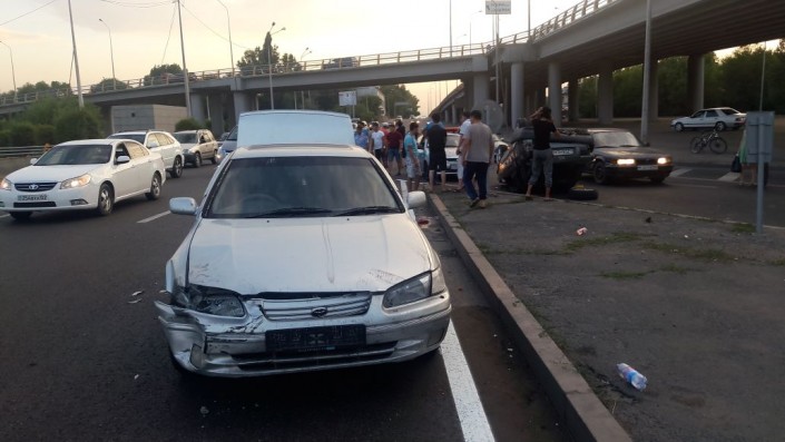 ДТП произошло под мостом на пересечении проспекта Рыскулова и улицы Кудерина. Audi двигалась в восточном направлении по Рыскулова. Очевидцы сообщили, что водитель решил повернуть налево со второго ряда. В этот момент в крайнем левом ряду двигалась Toyota. В результате удара Audi наехала на разделительный бордюр и перевернулась. После этого в Toyota на полном ходу влетела BMW.