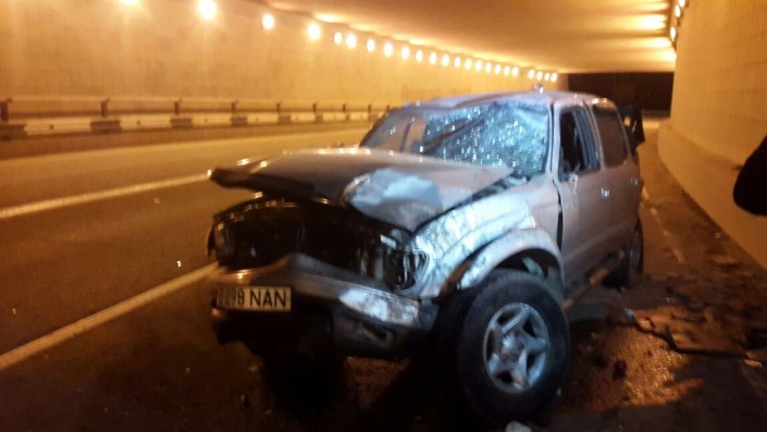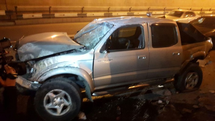 Автомобили марки BMW и Toyota Tacoma ехали по Восточной объездной дороге в западном направлении. Машина BMW на большой скорости сильно ударила в заднюю часть авто марки Toyota, после чего ее несколько раз перевернуло и машина оказалась на полосе встречного движения.