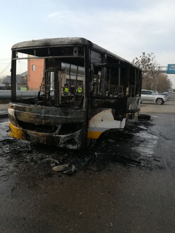 Автобус сгорел в центре Шымкента ©Tengrinews.kz.