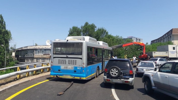 В Алматы автобус врезался в отбойник на мосту, сообщает корреспондент программы "Территория происшествий" на телеканале СТВ.
