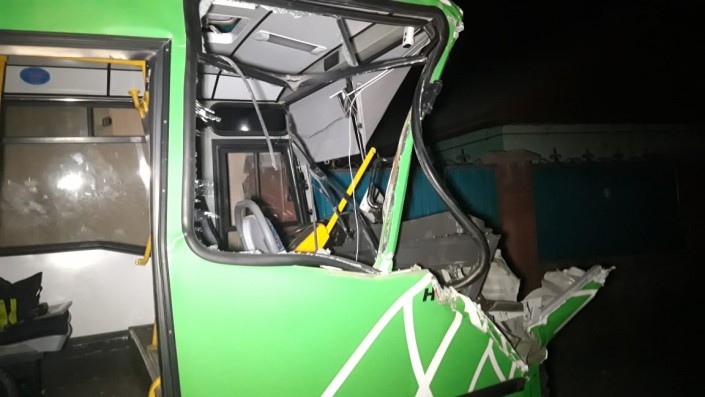 Автобус врезался в припаркованный манипулятор в Алматы Фото программы "Территория происшествий"