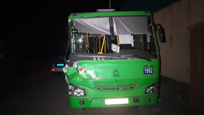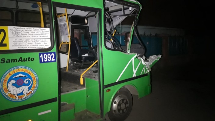 ДТП случилось в микрорайоне Шанырак на улице Каркара. По словам очевидцев, водитель автобуса 102-го маршрута хотел объехать припаркованный манипулятор и выехал на полосу встречного движения. Однако, увидев встречную машину, водитель автобуса вырулил вправо и на полном ходу въехал в грузовик.