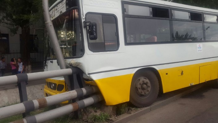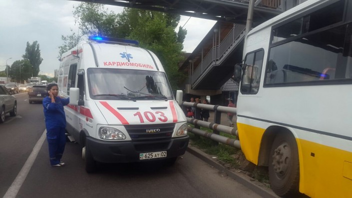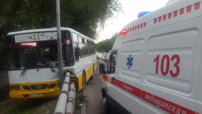 Автобус врезался в столб в Алматы, 13 пассажиров пострадали