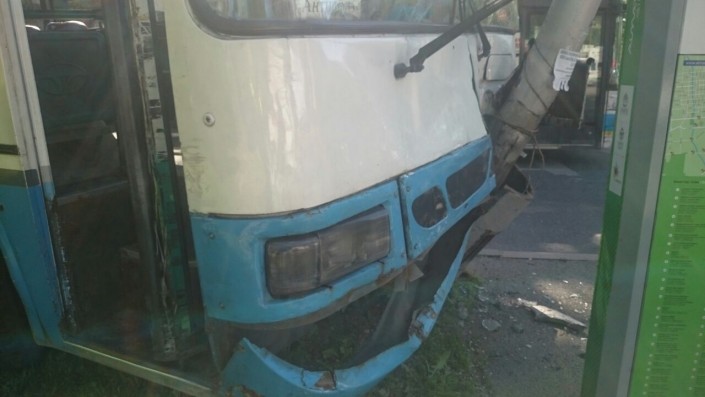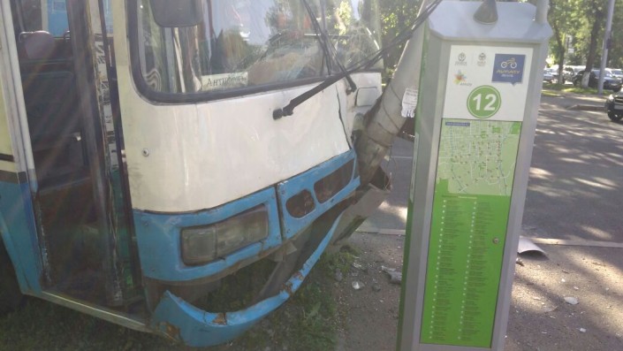 Автобус врезался в столб в Алматы, передает корреспондент программы "Территория происшествий" на канале СТВ.