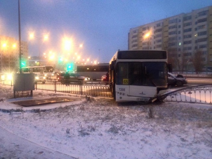 Автобус вылетел на обочину из-за столкновения с Audi в Астане Фото huseyin.abilov/facebook.com