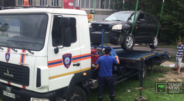 В Алматы автомобиль Hyundai Santa Fe вылетел с моста развязки, передает корреспондент Tengrinews.kz. ДТП произошло на улице Саина утром 4 июля около 7.00.