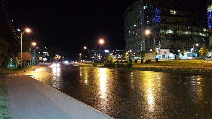 Как сообщают очевидцы, вероятнее всего, автомобиль занесло, потому что на этом затяжном повороте между проспектом Сейфуллина и улицей Желтоксан был мокрый и скользкий асфальт.