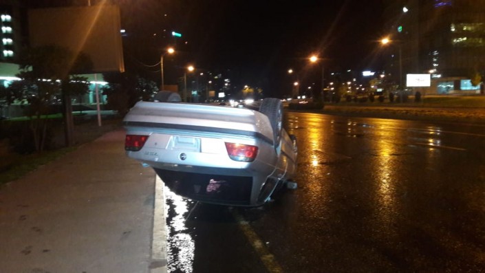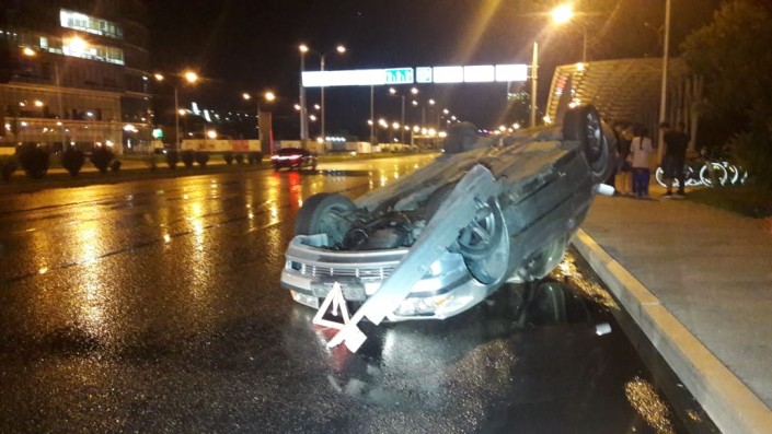 Автомобиль перевернулся из-за мокрого асфальта в Алматы