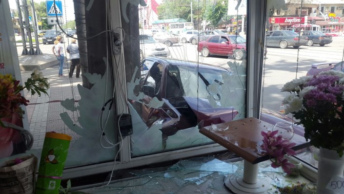 Автомобиль врезался в цветочный павильон в Алматы, сообщает корреспондент программы "Территория происшествий" на телеканале СТВ. Авария произошла сегодня на пересечении улиц Толе би - Ауэзова.