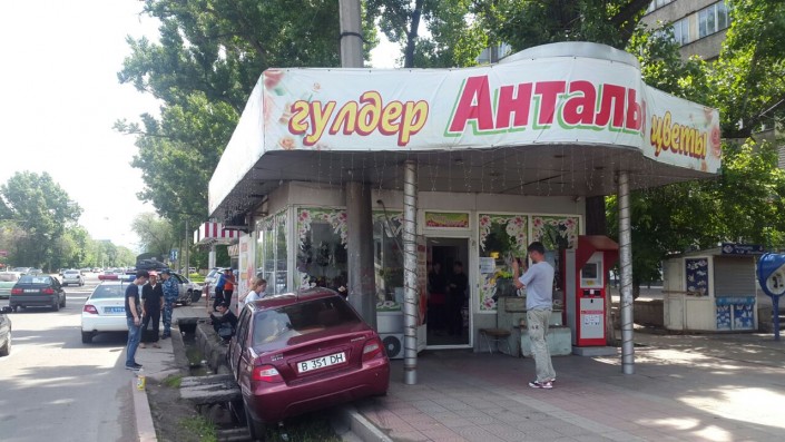 Автомобиль врезался в цветочный павильон в Алматы