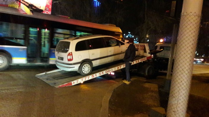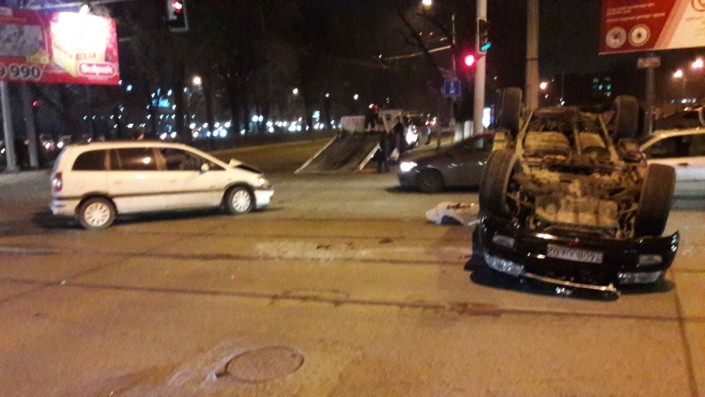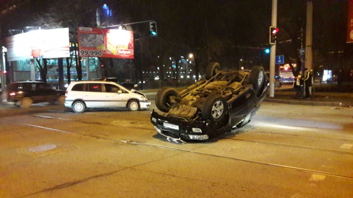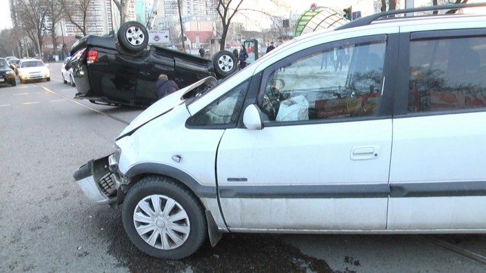 Вечером 5 марта в Алматы на пересечении проспекта Абая с улицей Жарокова столкнулись легковой автомобиль Opel и внедорожник Toyota Land Cruiser. В результате столкновения японский внедорожник опрокинулся на крышу. Об этом сообщает корреспондент Tengrinews.kz.