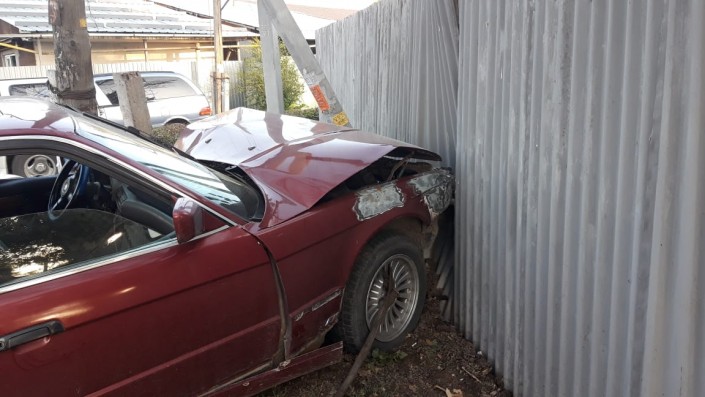 На перекрестке произошло столкновение машин. От удара оба авто откинуло на тротуар. BMW снес опору газовой трубы и влетел в забор частного жилого дома.