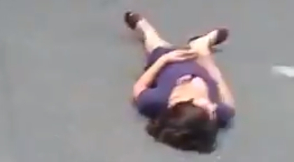В один из моментов дама просто взяла и легла посредине проезжей части. Что произошло дальше, не уточняется. Неизвестна также причина столь странного поведения.