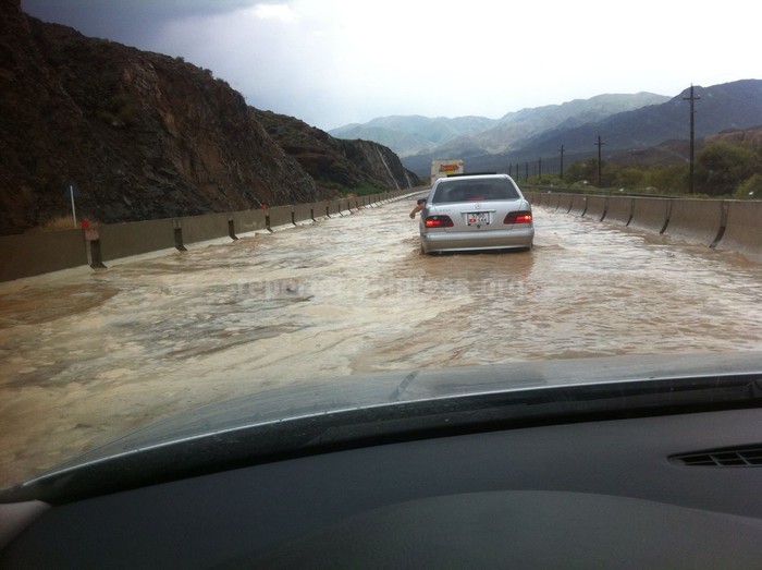 "Из-за сильных осадков образовались дождевые потоки. Потоки образовались на 139 км автодороги Бишкек - Нарын - Торугарт. Такой потоп образовался из-за бетонных ограждений на дороге, которые и не пропускают воду. На место уже выехали две машины для расчистки автодороги", - прокомментировали в МЧС.