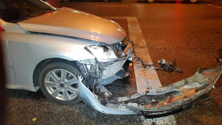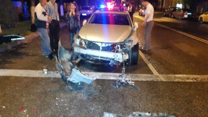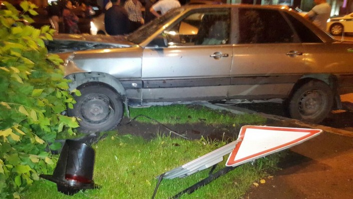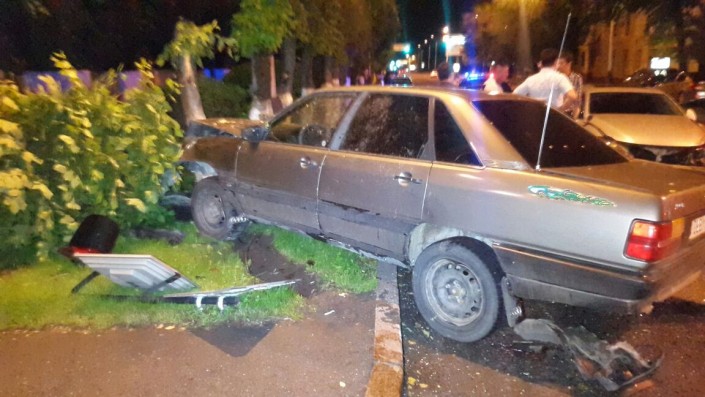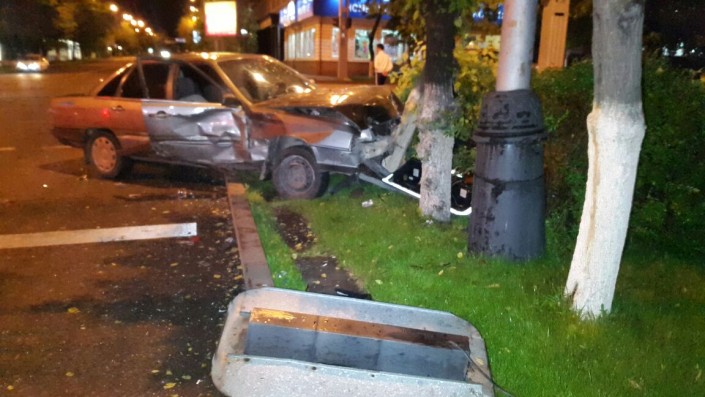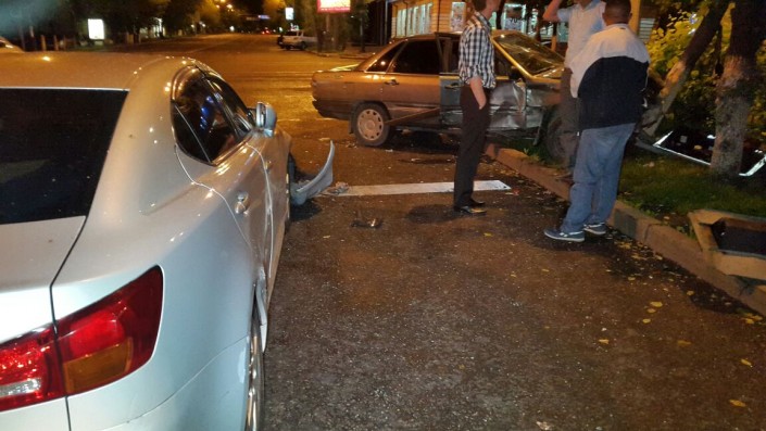 На пересечении улиц Фурманова и Богенбай батыра Lexus столкнулся с Audi, который в этот момент двигался в западном направлении по Богенбай батыра. От удара Audi сбил дерево и светофор. В результате аварии пострадал водитель Audi. Его госпитализировали в больницу.