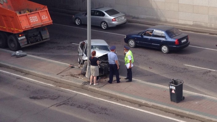 В Астане легковой автомобиль врезался в столб, передает корреспондент Tengrinews.kz с места происшествия.