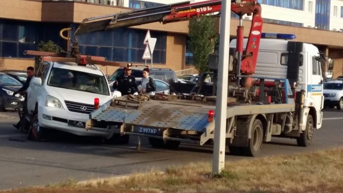 Пользователь Facebook Тимур Асылханов опубликовал на своей странице фото с места столкновения машины дорожного патруля и внедорожника.