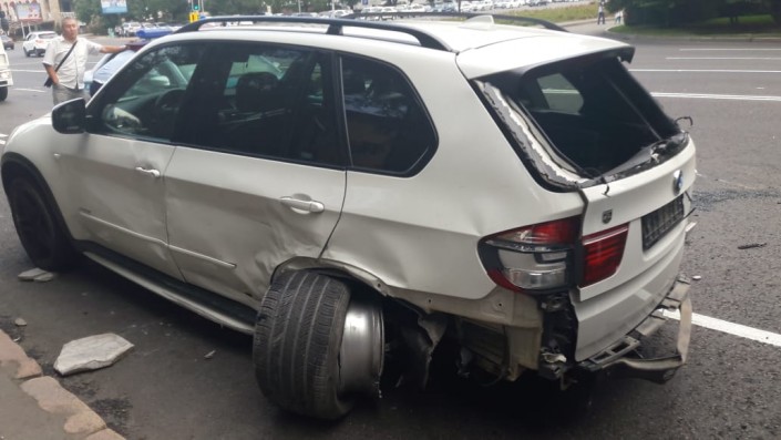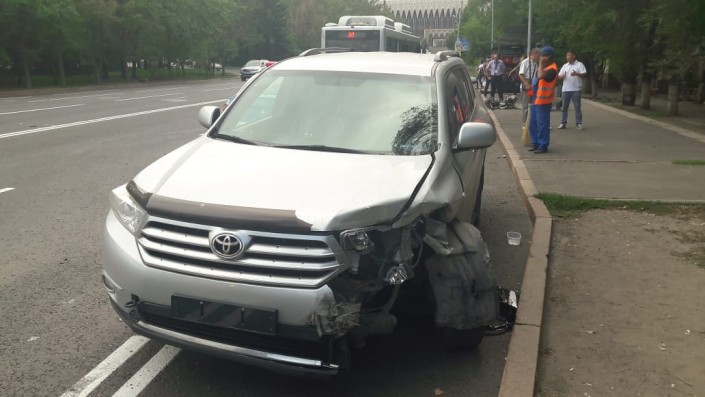 ДТП произошло на проспекте Желтоксан, недалеко от улицы Сатпаева. По словам очевидцев, BMW X5 ехал в южном направлении по проспекту Желтоксан. В этот момент в северном направлении по той же улице ехал автомобиль Toyota Highlander. Водитель собирался повернуть налево и задел BMW X5. Внедорожник в результате врезался в железный столб.