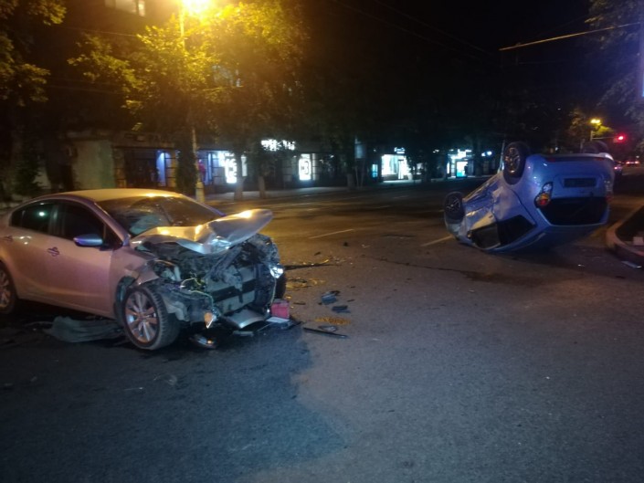 Авария произошла на пересечении улиц Кабанбай батыра и Пушкина. Со слов очевидцев, Daewoo двигалась по Пушкина в южном направлении. Водитель не заметил или проигнорировал знак "Уступи дорогу" и выехал на Кабанбай батыра. Водитель KIA не успел среагировать и на полном ходу врезался в Daewoo. От удара Daewoo опрокинулся на крышу.