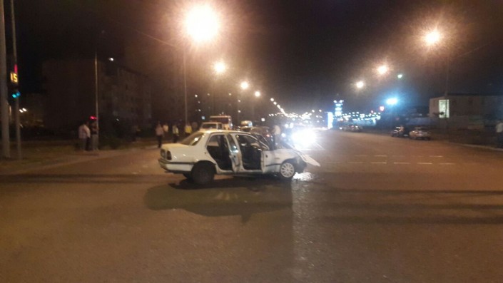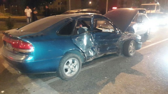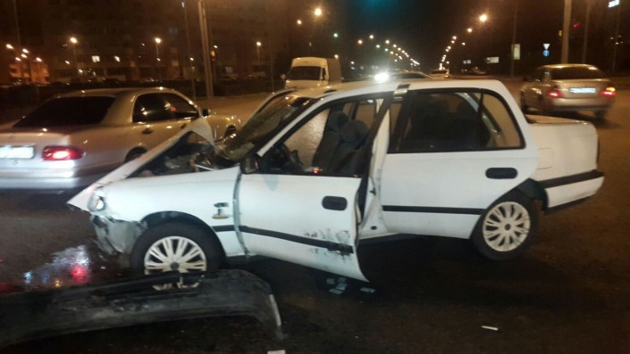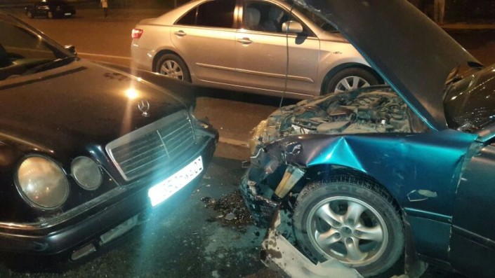Со слов водителя Nissan Sunny, Mazda хотела "проскочить", но Nissan, не успев затормозить, ударил ее в боковую часть. В результате удара Mazda отлетела в сторону и ударила стоящее на красный свет светофора авто марки Mercedes-Benz. Отметим, что Mercedes стоял по улице Момышулы в северном направлении.