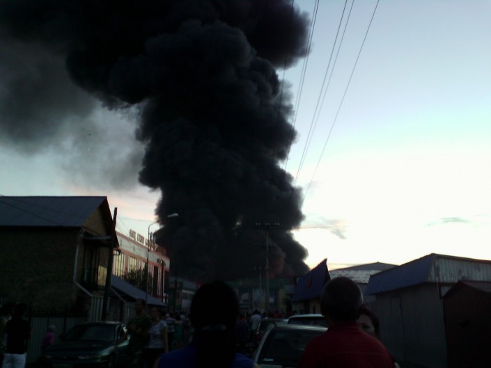 Как сообщается, пожар в ТЦ "Болашак" и "Мир обуви" произошел в 18.55. Площадь возгорания составила 2,5 тысячи квадратных метров. В ликвидации пожара были задействованы 80 человек личного состава ДЧС, а также противопожарная техника и машины коммунальных служб города. Кроме того, для обеспечения порядка и пресечения попыток мародерства были привлечены 500 полицейских и солдат внутренних войск.