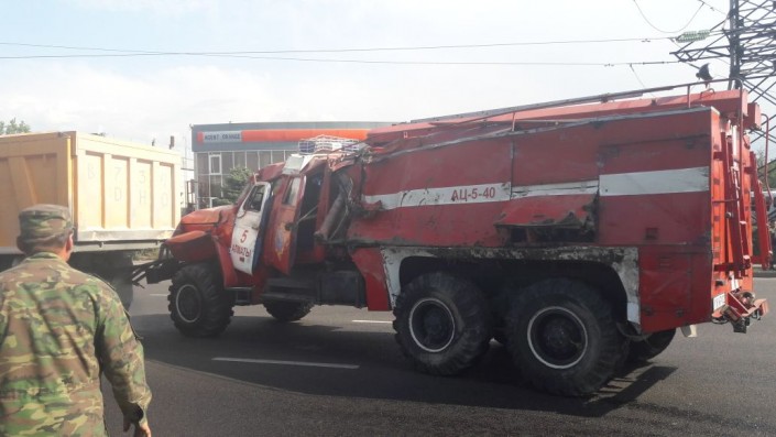 Инцидент произошел в районе улиц Закарпатская и Рыскулова. По предварительной версии, пожарное авто двигалось по Закарпатской в северном направлении. Машина ехала с проблесковыми маячками. По словам водителя, его подрезало другое авто.