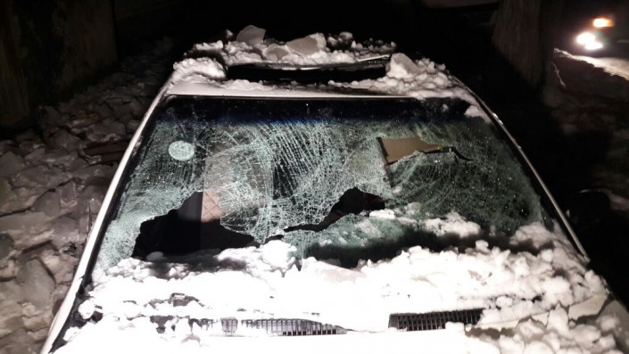 ЧП произошло 2 декабря. С крыши дома № 8 по улице Саина на припаркованные во дворе машины обрушились пласты снега и глыбы льда. Как рассказала владелица Toyota Camry, около 16.00 она приехала домой и припарковала во дворе машину. "С крыши упали сосульки и разбили ее. Я позвонила в КСК, чтобы они разобрались в ситуации, но меня отправили в МЧС", - сказала женщина.