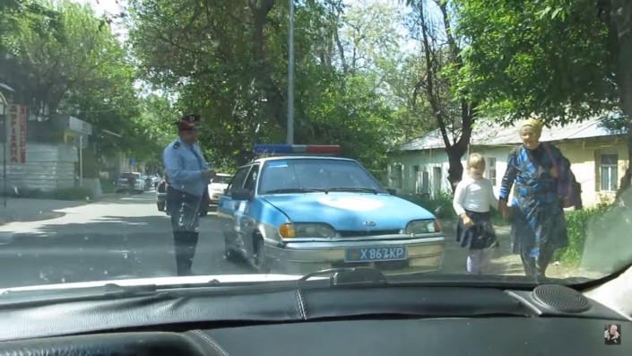 В Шымкенте бдительный гражданин "выявил факт злонамеренных действий сотрудников дорожной полиции в отношении водителей" на улице Сасбукаева, сообщает сайт ОО "ОСА".