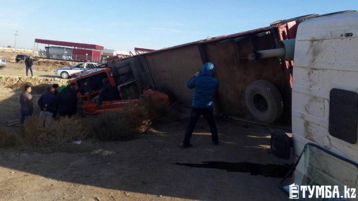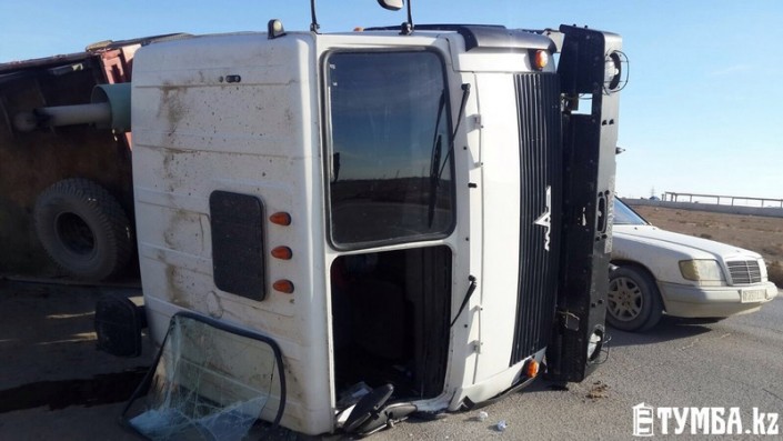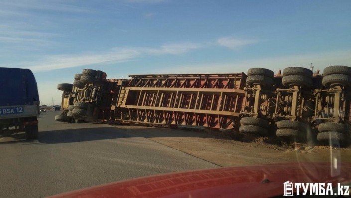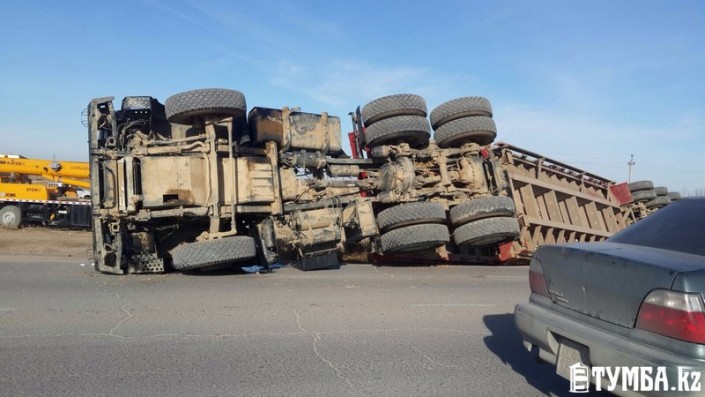 Груженная фура перевернулась в Актау Фото с сайта tumba.kz